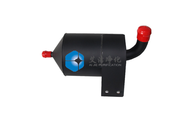 艾潔凈化生產(chǎn)的旋風式油氣分離器是讓氣液混合氣經(jīng)過切向進氣道或是螺旋進氣道進入分離器內(nèi),使混合氣在分離器內(nèi)旋轉運動,以此產(chǎn)生離心力來實現(xiàn)油滴的分離,它的分離機理與主動離心式油氣分離器相同,只是不需外界提供動力。